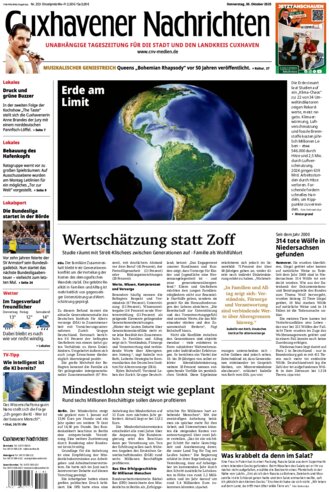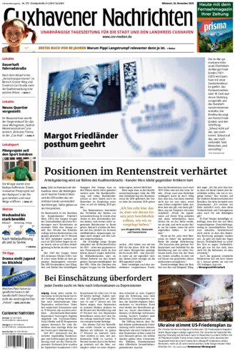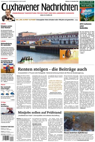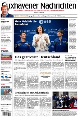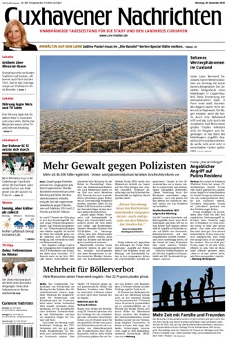 Um sich eine Online-Ausgabe der Cuxhavener Nachrichten anzusehen, klicken Sie bitte auf das entsprechende Datum.