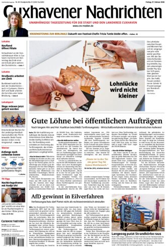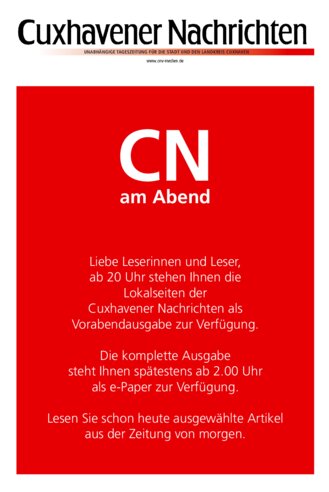 ePaper-Ausgabe nicht komplett? Bitte senden Sie uns eine Nachricht an leserservice@cuxonline.de.
