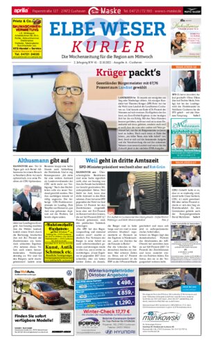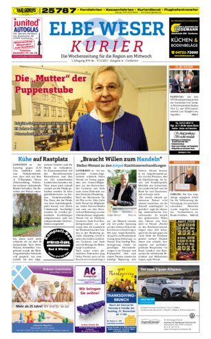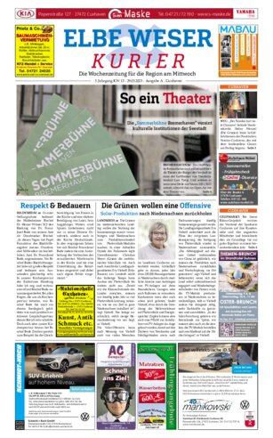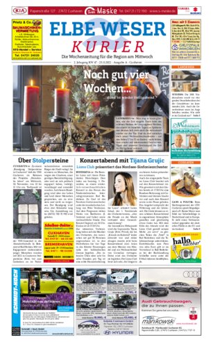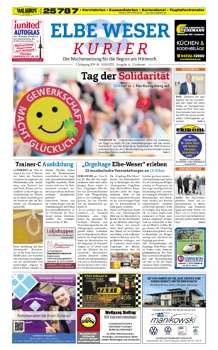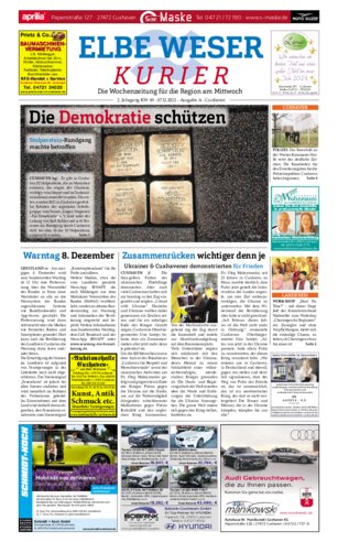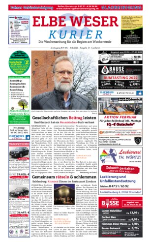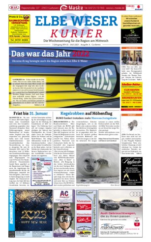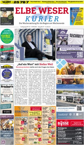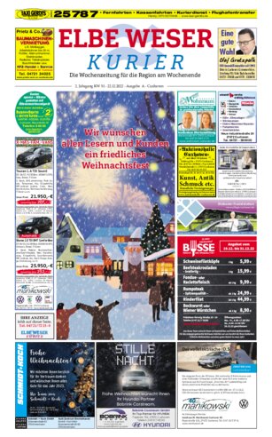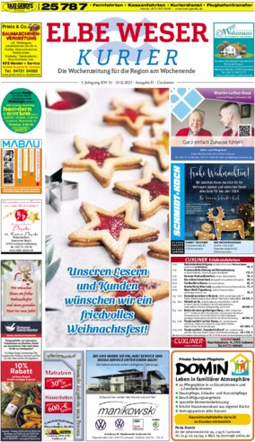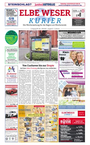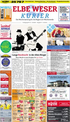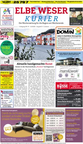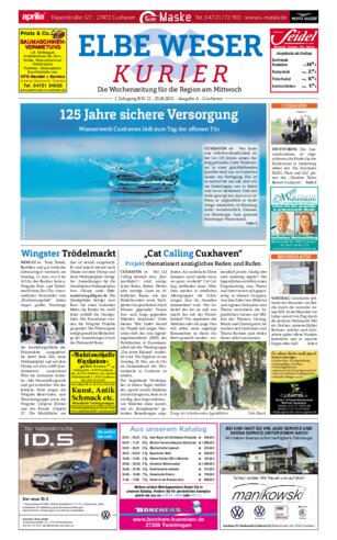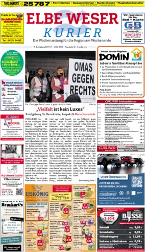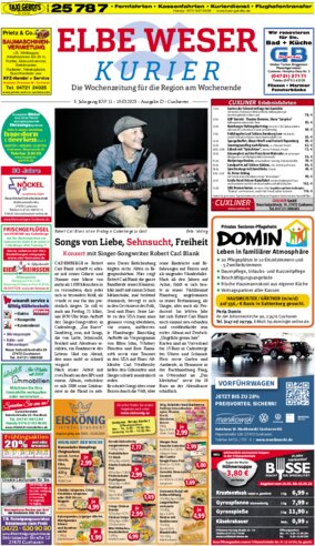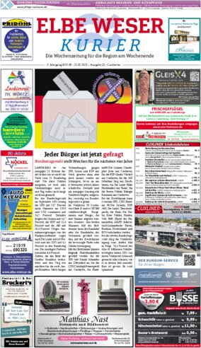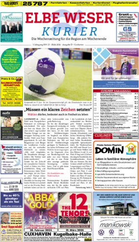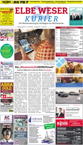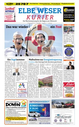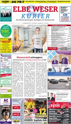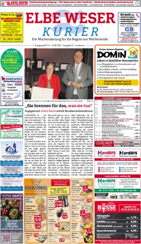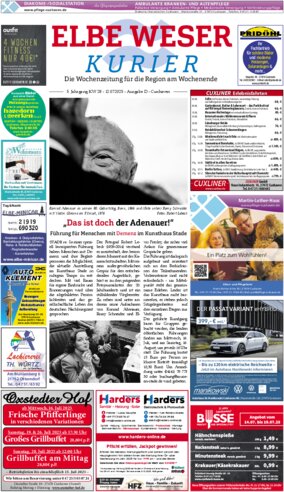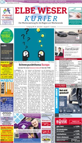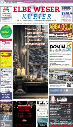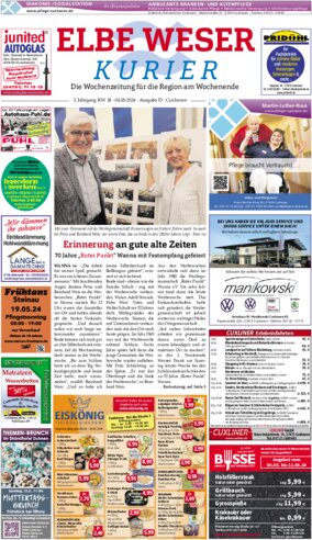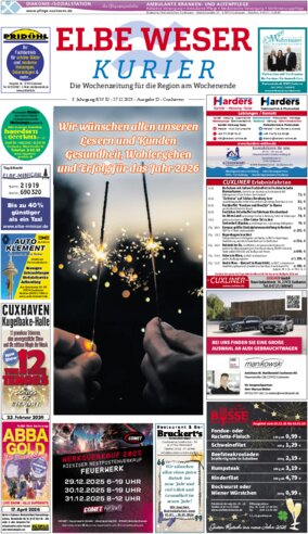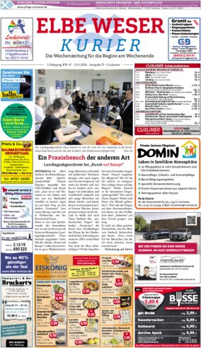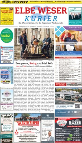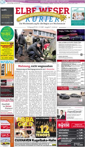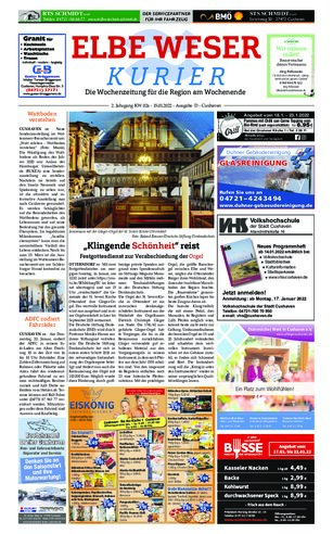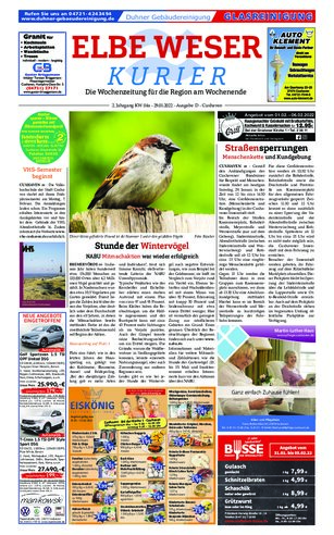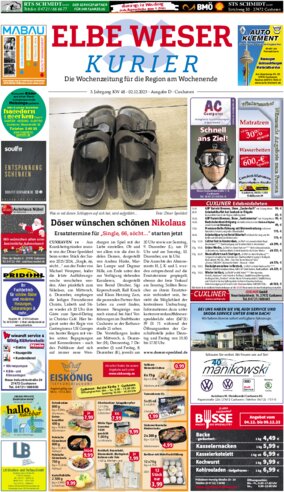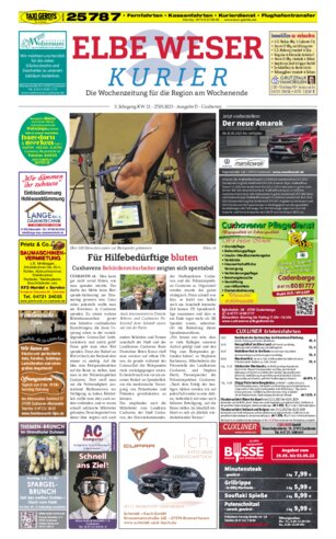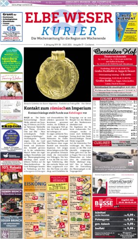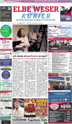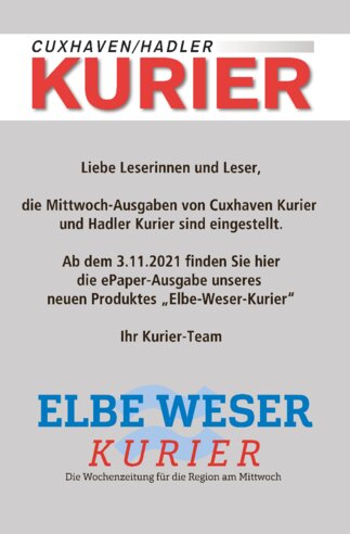 Um sich den Elbe-Weser-Kurier (Ausgabe Cuxhaven) anzusehen, klicken Sie bitte auf das entsprechende Datum.