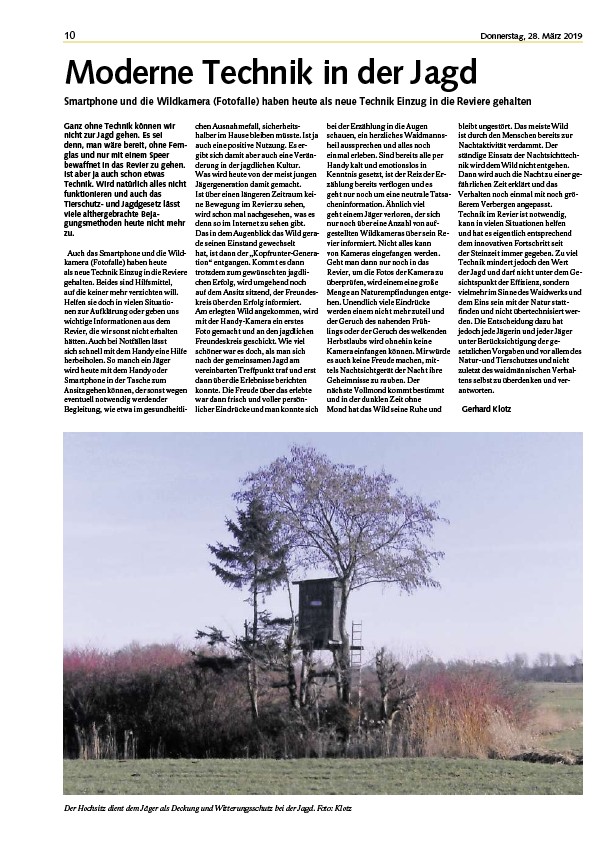 Smartphone und die Wildkamera (Fotofalle) haben heute als neue Technik Einzug in die Reviere gehalten