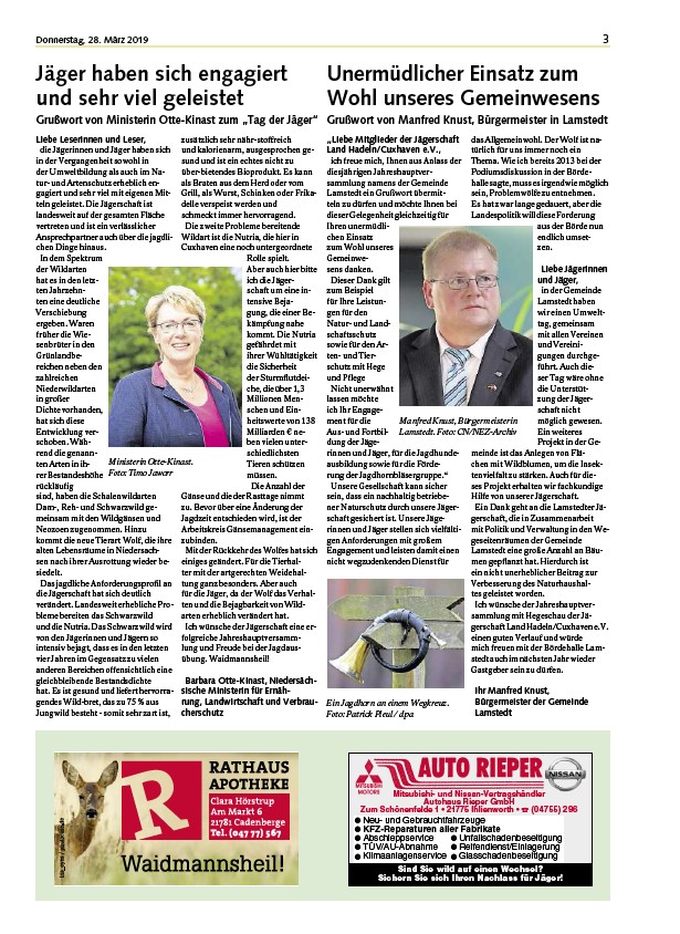 Ein Dank geht an die Lamstedter Jägerschaft,