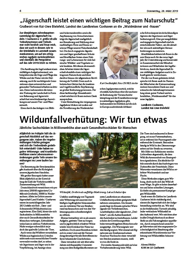 Grußwort von Kai-Uwe Bielefeld, Landrat des Landkreises Cuxhaven an die „Waidmänner und -frauen“