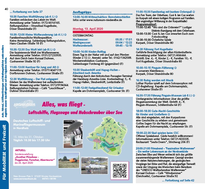 Für Mobilität und Freizeit Auto. Fahrrad, Schiffsverbindungen und Wattwagenfahrten sowie weitere