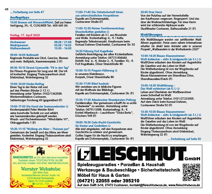 Telefon: 04751/3388. Kostenbeitrag: 8,- ¤.