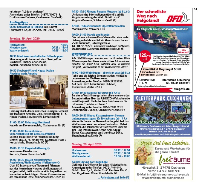 Tel.: 04721/62213 und www.cuxhaven.de/tickets.