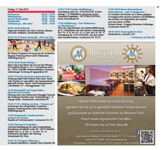 Anmeldung erforderlich unter Tel.: 04721/404444.