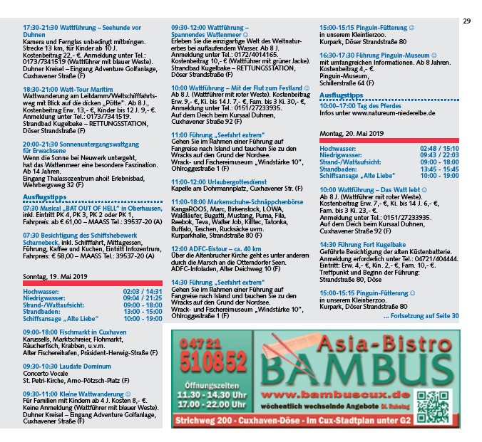 Anmeldung erforderlich unter Tel.: 04721/404444.