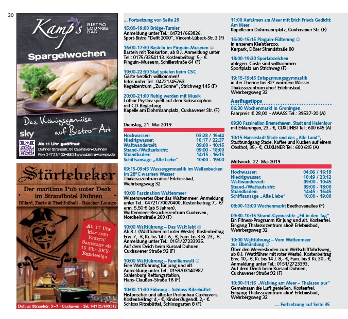 unter Tel.: 04721/70070400, Kostenbeitrag 7,- ¤/