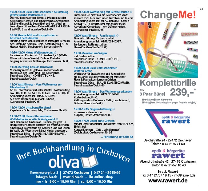 Erw. 10,- ¤, Ki. bis 14 J. 8,- ¤, Fam. bis 3 Ki. 30,- ¤.
