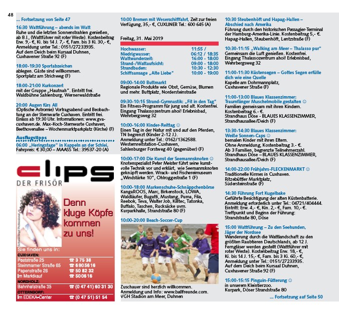 ... Fortsetzung von Seite 47 10:00 Bremen mit Weserschifffahrt, Zeit zur freien