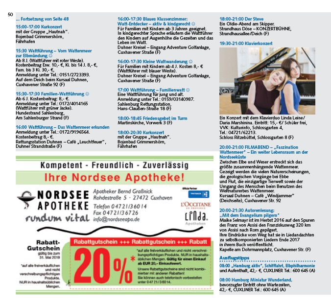 und Aufenthalt, 42,- ¤, CUXLINER Tel.: 600 645 (A)