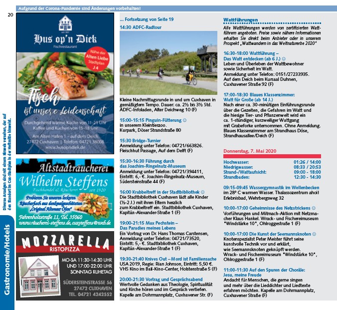 Aufgrund der Corona-Pandemie sind Änderungen vorbehalten! ... Fortsetzung von Seite 19