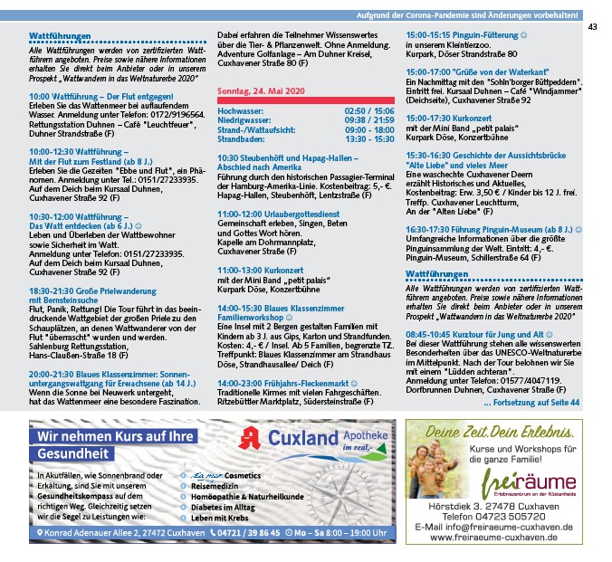 Aufgrund der Corona-Pandemie sind Änderungen vorbehalten!