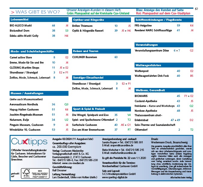 > Was gibt es wo? Unserer Anzeigen-Kunden in diesem Heft.