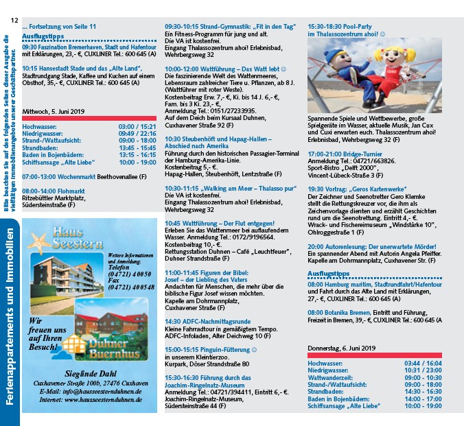 Anmeldung Tel.: 04721/394411, Eintritt 6,- ¤.