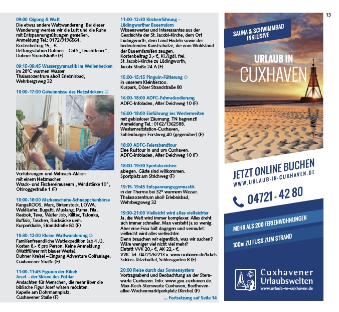 VVK: Tel.: 04721/62213 u. www.cuxhaven.de/tickets.