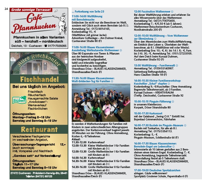 Kostenbeitrag 7,- ¤/5,50 ¤ (ab 5 Jahren).