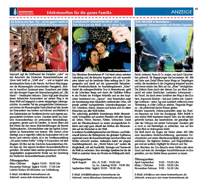 Magazin geOlino lud das Deutsche Auswandererhaus Kinder