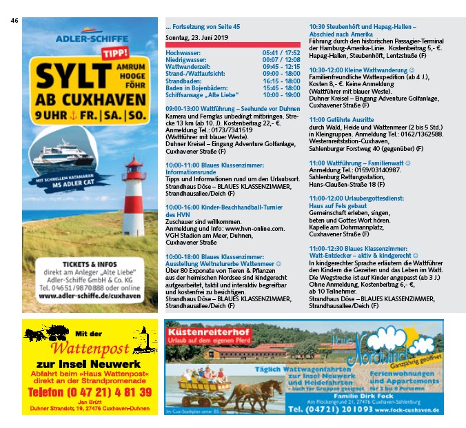 Strand-/Wattaufsicht: 09:00 - 18:00