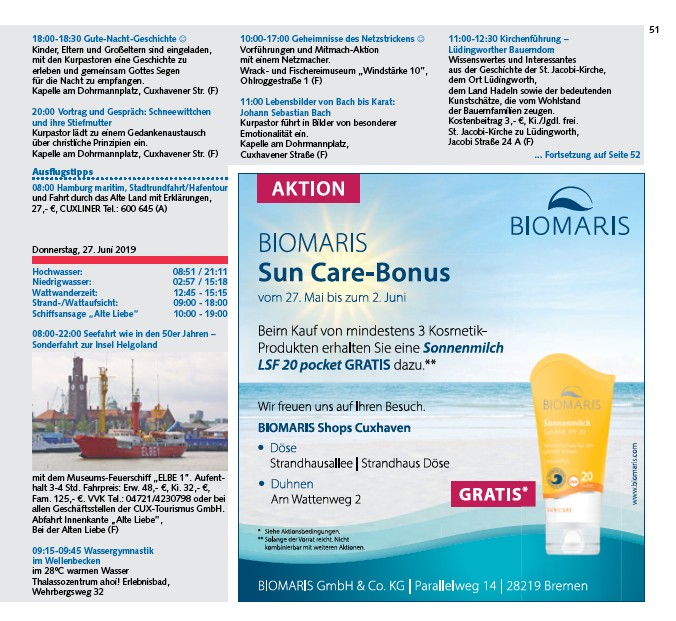 allen Geschäftsstellen der CUX-Tourismus GmbH.
