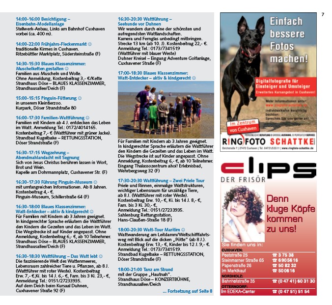 Erw. 7,- ¤,Ki. bis 14 J. 6,- ¤, Fam. bis 3 Ki. 23,- ¤,