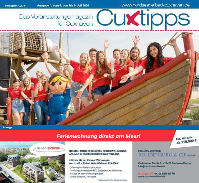 1 Schutzgebühr 0,50 € Ausgabe 4, vom 9. Juni bis 6. Juli 2020 www.nordseeheilbad-cuxhaven.de Das Veranstaltungsmagazin für Cuxhaven Anzeige