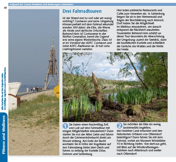 Aufgrund der Corona-Pandemie sind Änderungen vorbehalten! Drei Fahrradtouren