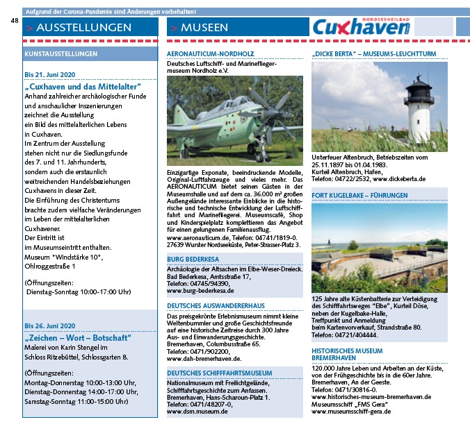 www.aeronauticum.de, Telefon: 04741/1819-0.