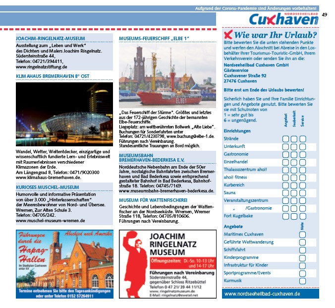 Telefon: 04721/4230798, www.buchung@elbe-1.de.