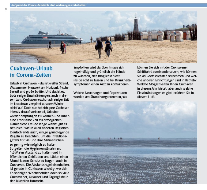Aufgrund der Corona-Pandemie sind Änderungen vorbehalten! Cuxhaven-Urlaub
