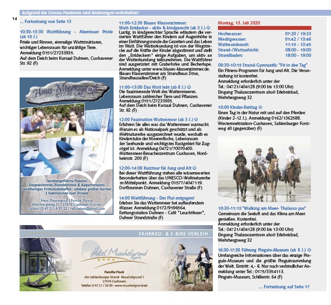 Aufgrund der Corona-Pandemie sind Änderungen vorbehalten!