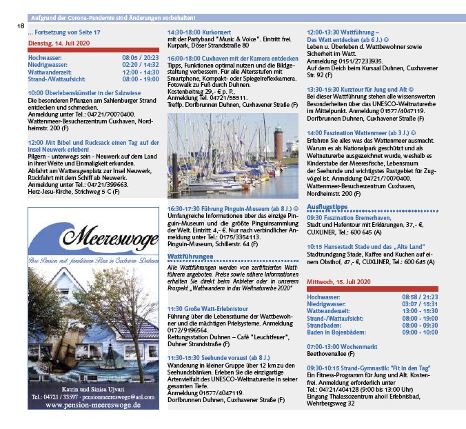 Aufgrund der Corona-Pandemie sind Änderungen vorbehalten!