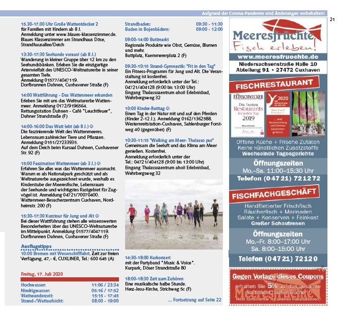 Aufgrund der Corona-Pandemie sind Änderungen vorbehalten!