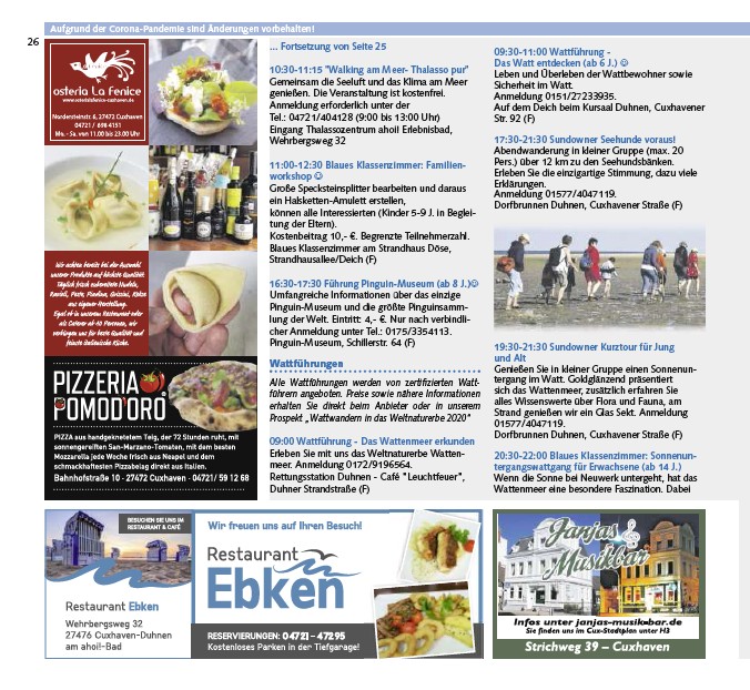 Aufgrund der Corona-Pandemie sind Änderungen vorbehalten! ... Fortsetzung von Seite 25