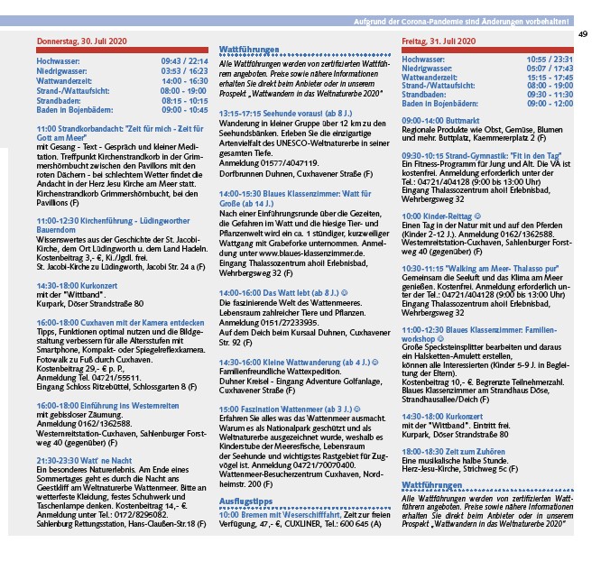Prospekt „Wattwandern in das Weltnaturerbe 2020“