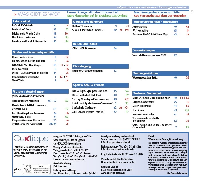 Rot: Planquadrat auf dem Cux-Stadtplan