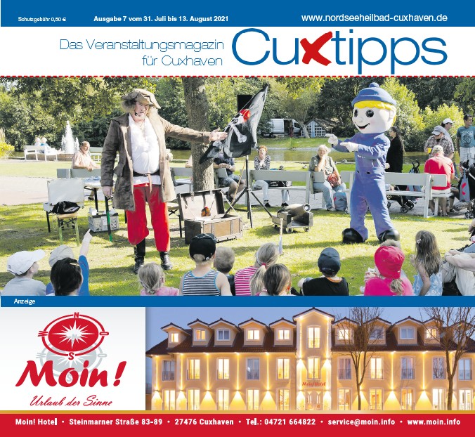 1 Schutzgebühr 0,50 € Ausgabe 7 vom 31. Juli bis 13. August 2021 www.nordseeheilbad-cuxhaven.de Das Veranstaltungsmagazin für Cuxhaven Anzeige