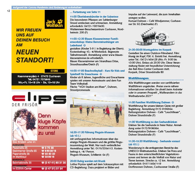 Aufgrund der Corona-Pandemie sind Änderungen vorbehalten! ... fortsetzung von Seite 11