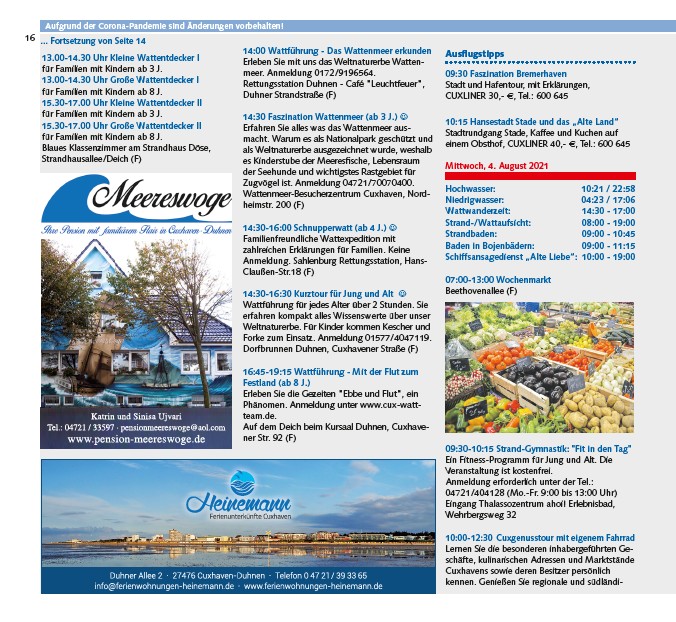 Aufgrund der Corona-Pandemie sind Änderungen vorbehalten! ... Fortsetzung von Seite 14