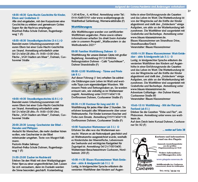 Aufgrund der Corona-Pandemie sind Änderungen vorbehalten!