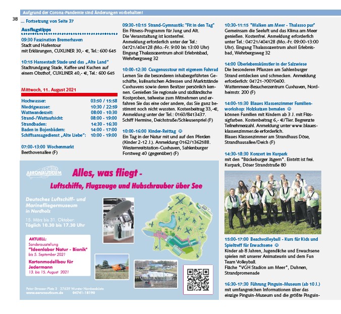 Aufgrund der Corona-Pandemie sind Änderungen vorbehalten!