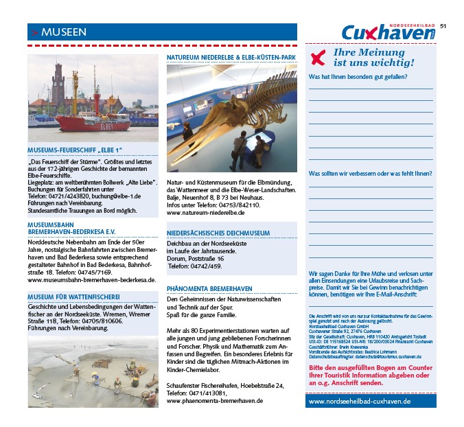 Datenschutzbeauftragter: datenschutz@tourismus.cuxhaven.de