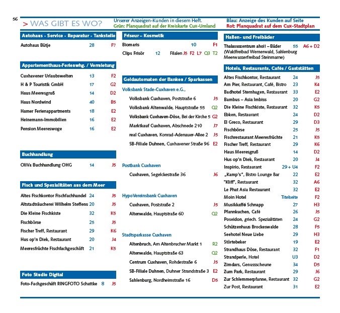 > Was gibt es wo? Blau: Anzeige des Kunden auf Seite