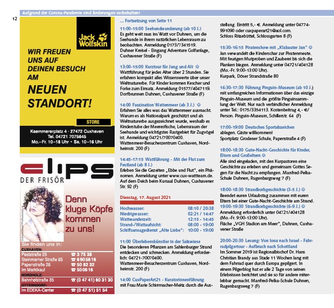 Aufgrund der Corona-Pandemie sind Änderungen vorbehalten! ... Fortsetzung von Seite 11