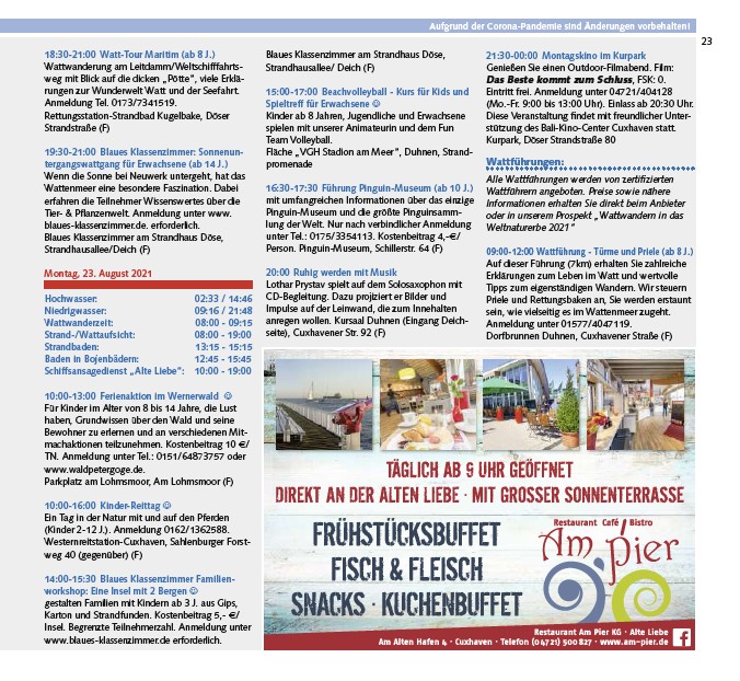 Aufgrund der Corona-Pandemie sind Änderungen vorbehalten!