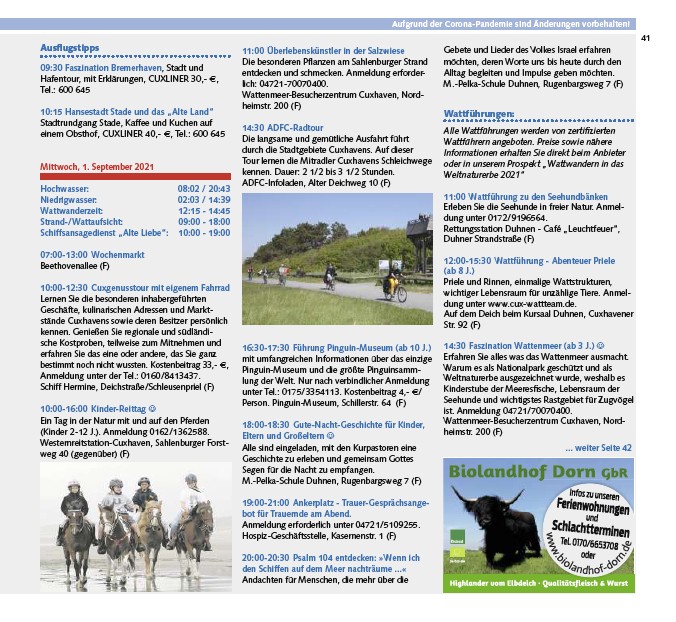 Aufgrund der Corona-Pandemie sind Änderungen vorbehalten!