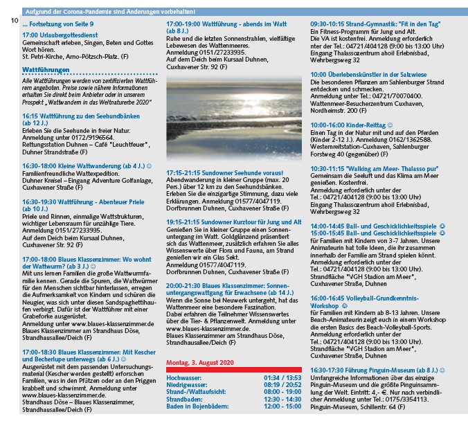 Strand-/Wattaufsicht: 08:00 - 19:00