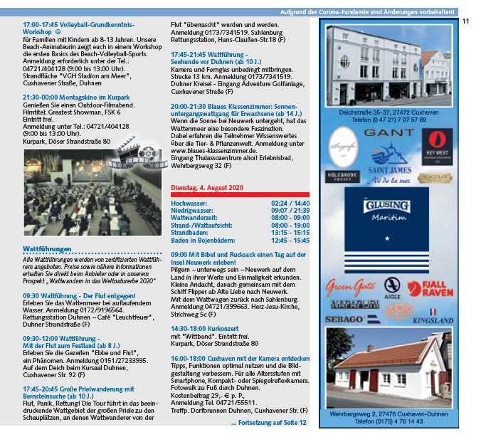 Aufgrund der Corona-Pandemie sind Änderungen vorbehalten!