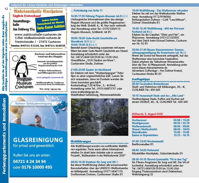 Aufgrund der Corona-Pandemie sind Änderungen vorbehalten! Ferienappartements und Immobilien Bitte beachten Sie auf den folgenden Seiten dieser Ausgabe die