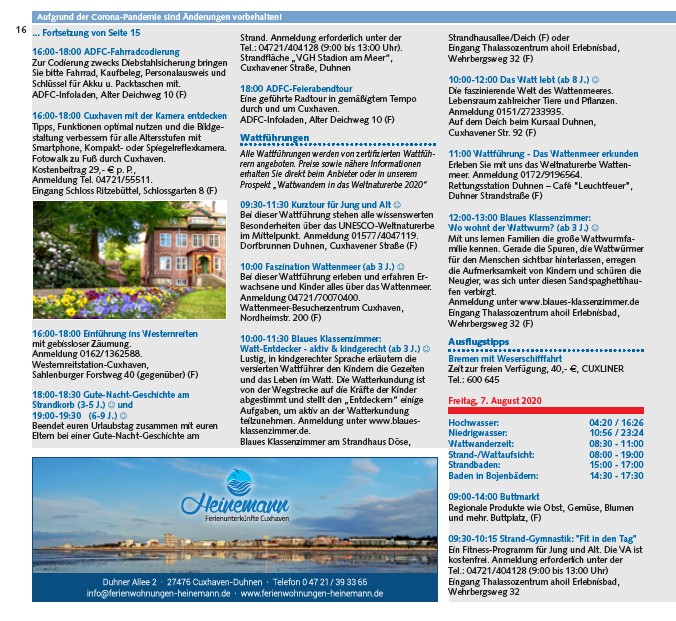 Aufgrund der Corona-Pandemie sind Änderungen vorbehalten! ... Fortsetzung von Seite 15